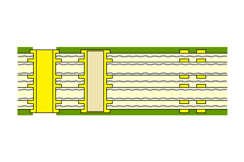 貫通スルーホールに、永久穴埋めを実施し、2次銅めっき後に、スルーホール直上に部品ランドを形成することにより、基板の小型化が可能になります。